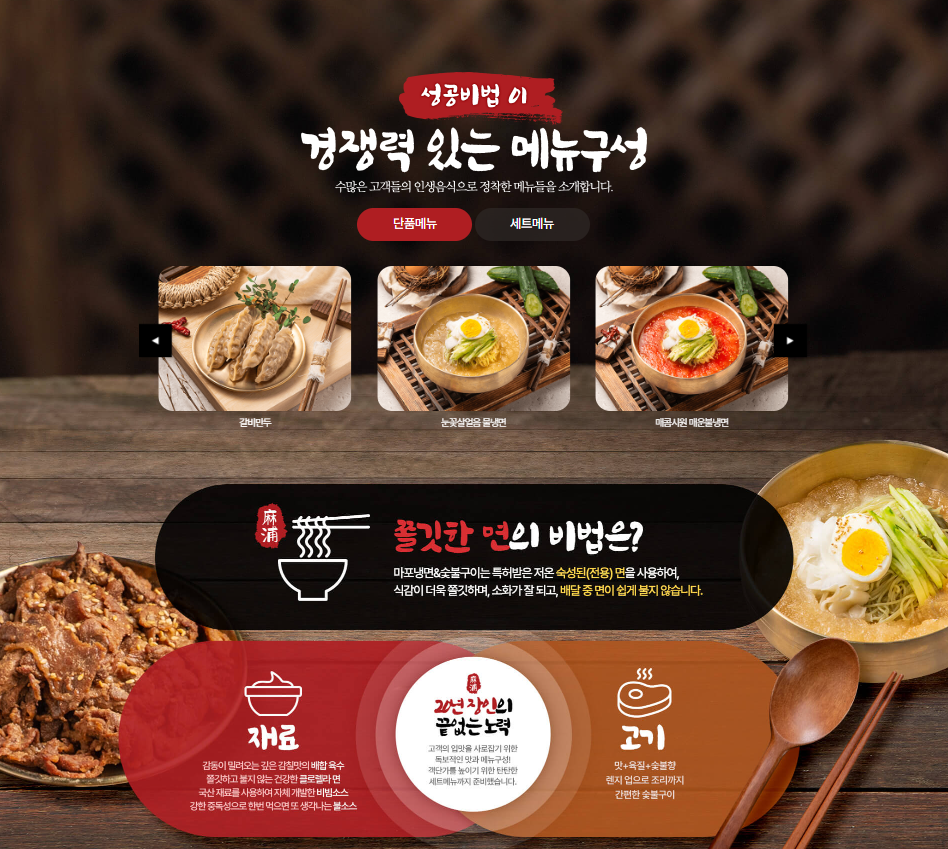 메뉴 : 냉면외 세트메뉴 구성