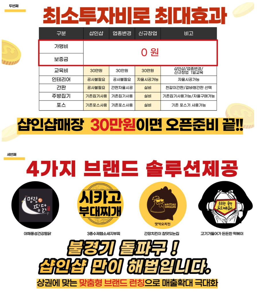 가맹비 / 교육비 / 로열티 모두 면제