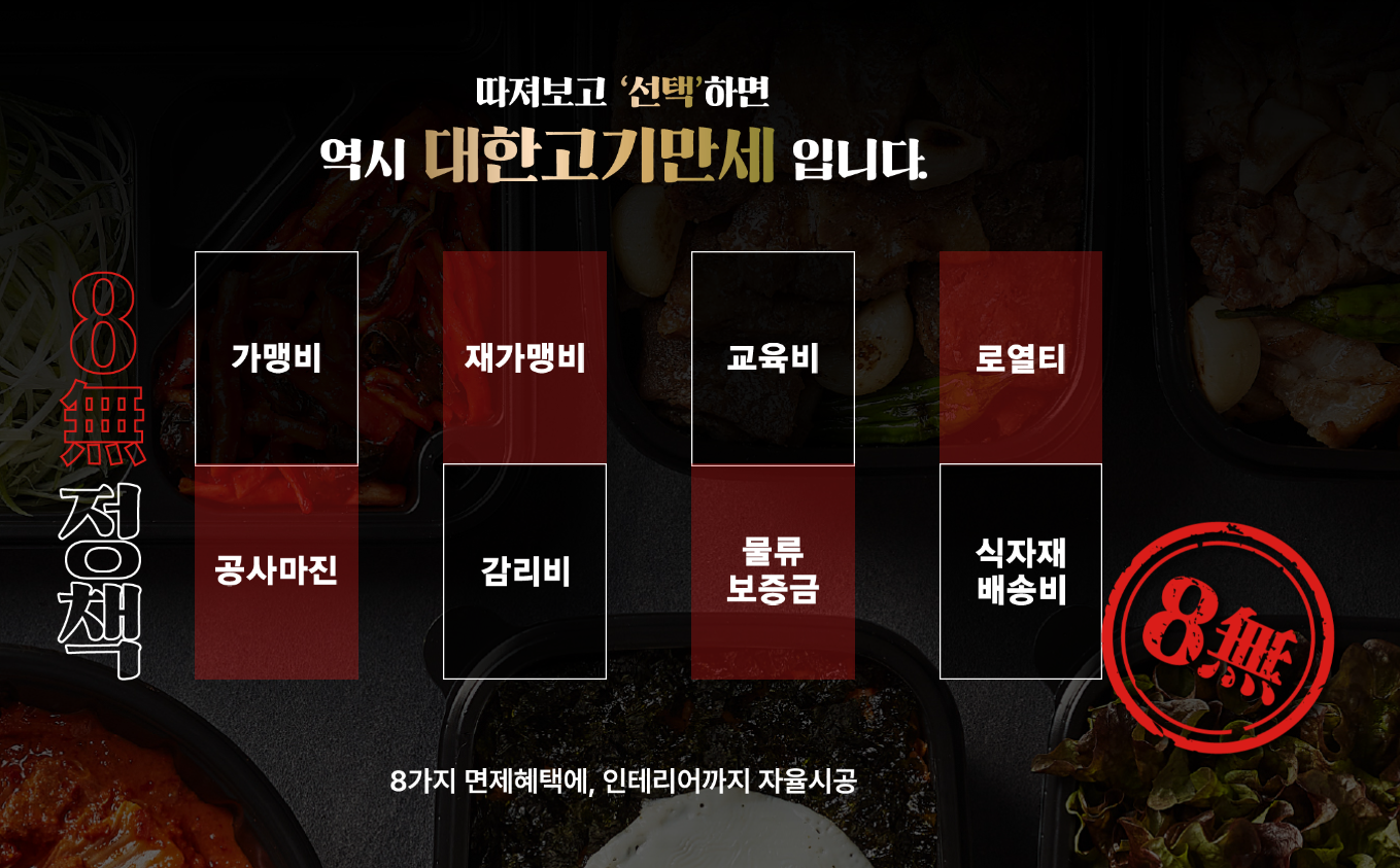 가맹비 / 교육비 / 로열티 모두 면제