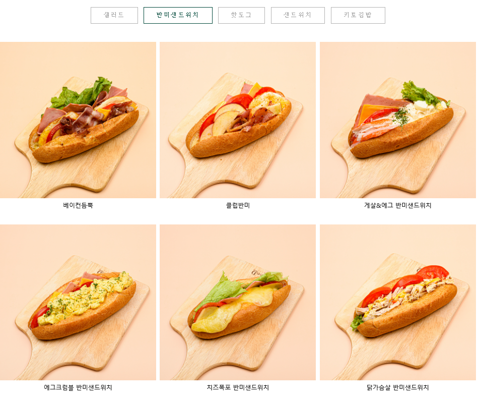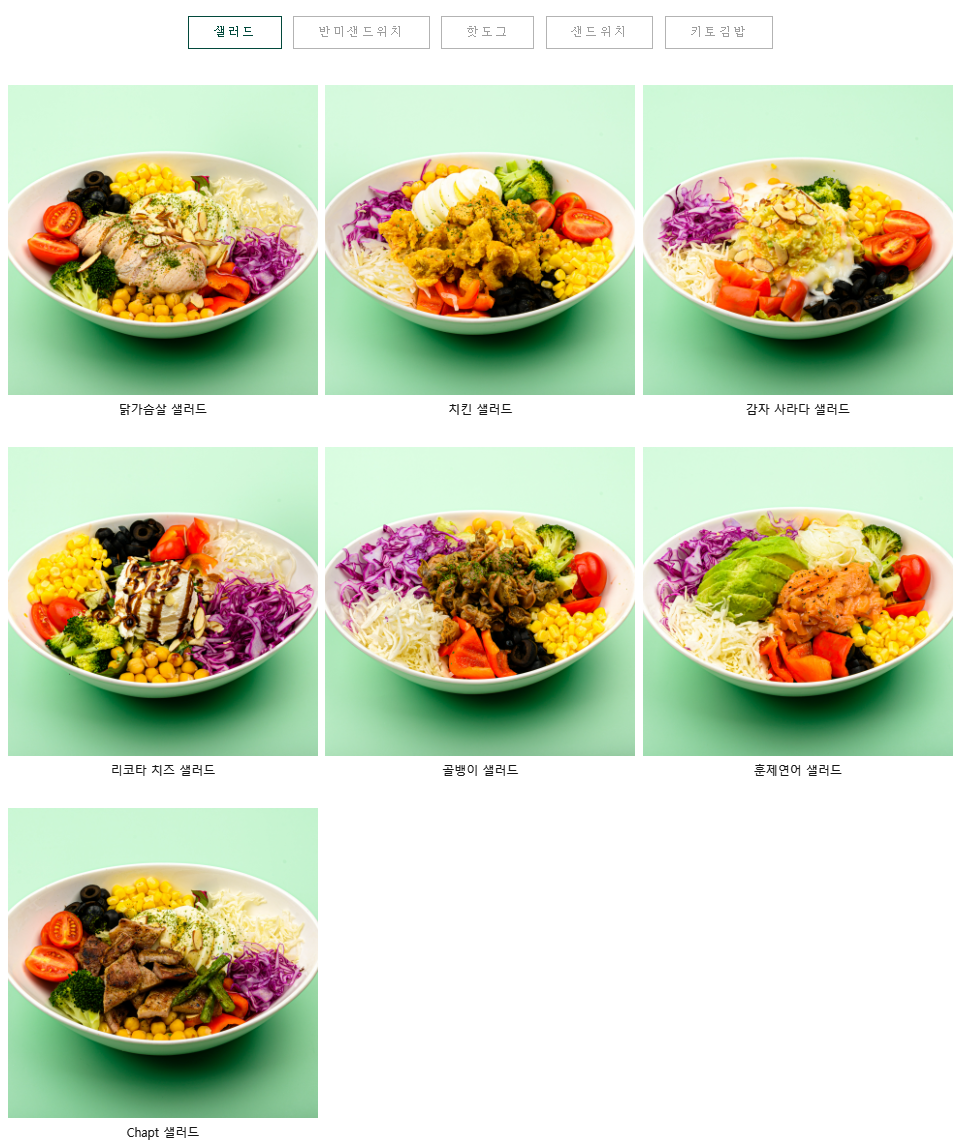 메뉴 : 찌개, 볶음, 구이, 비빔밥