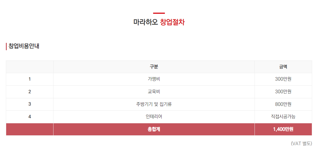 가맹비 / 교육비 / 로열티 모두 면제