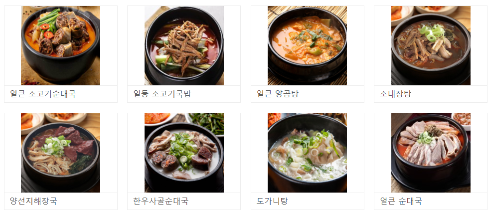 메뉴 : 돼지국밥, 병천순대, 삼겹수육