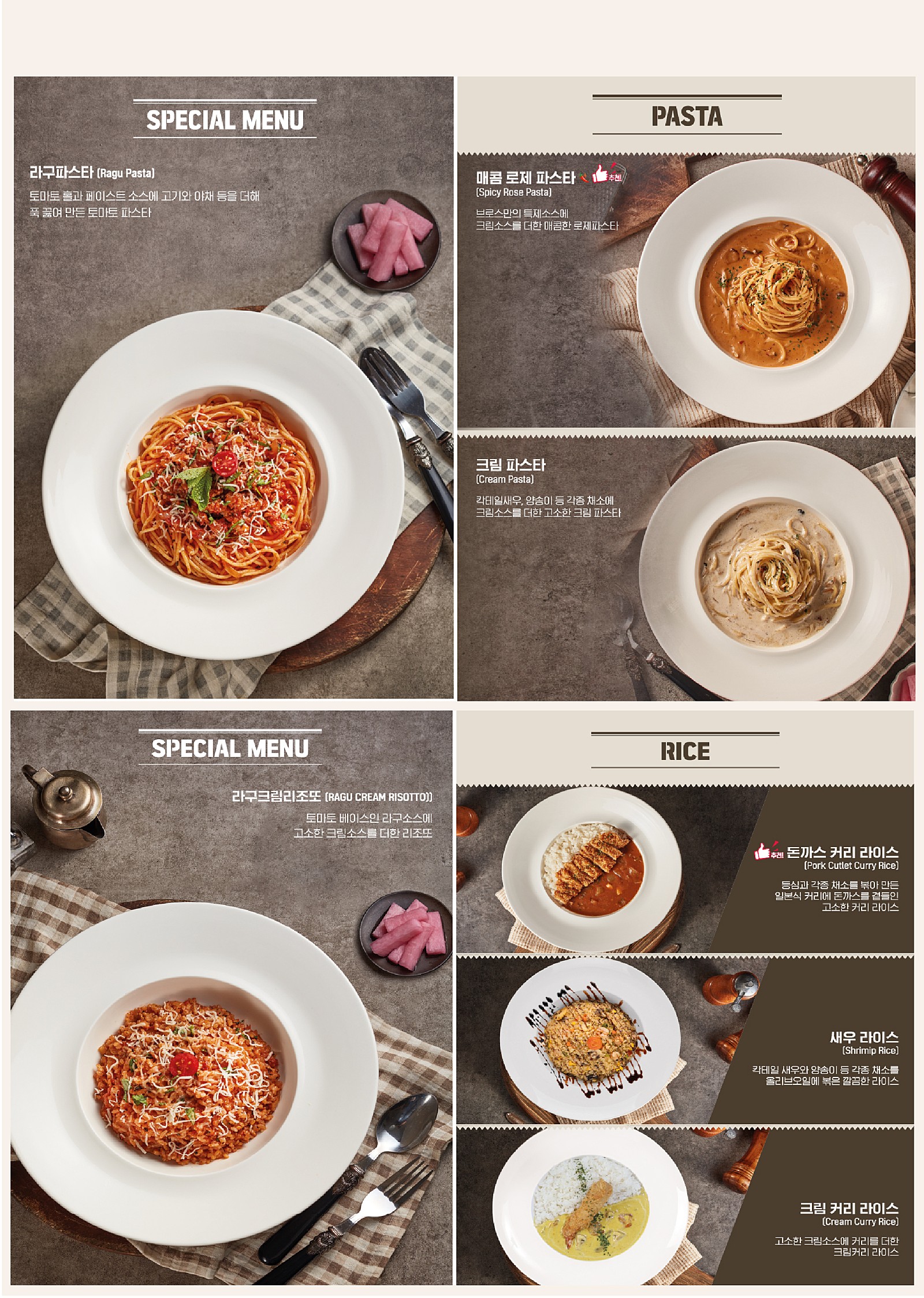 메뉴 : 파스타, 리조또
